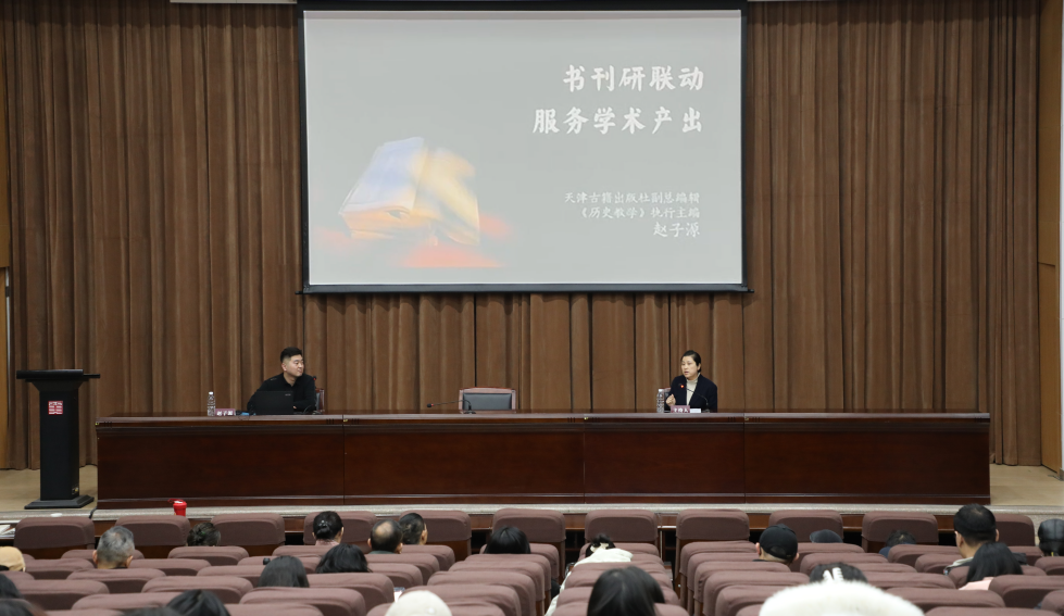 为进一步提升我校学术研究水平,促进学术成果高质量产出,2026年3月23日,学校特邀天津古籍出版社副总编辑、《历史教学》执行主编赵子源以“书刊研联动,服务学术产出”开展专题学术讲座。讲座由科研创作处负责人主持。