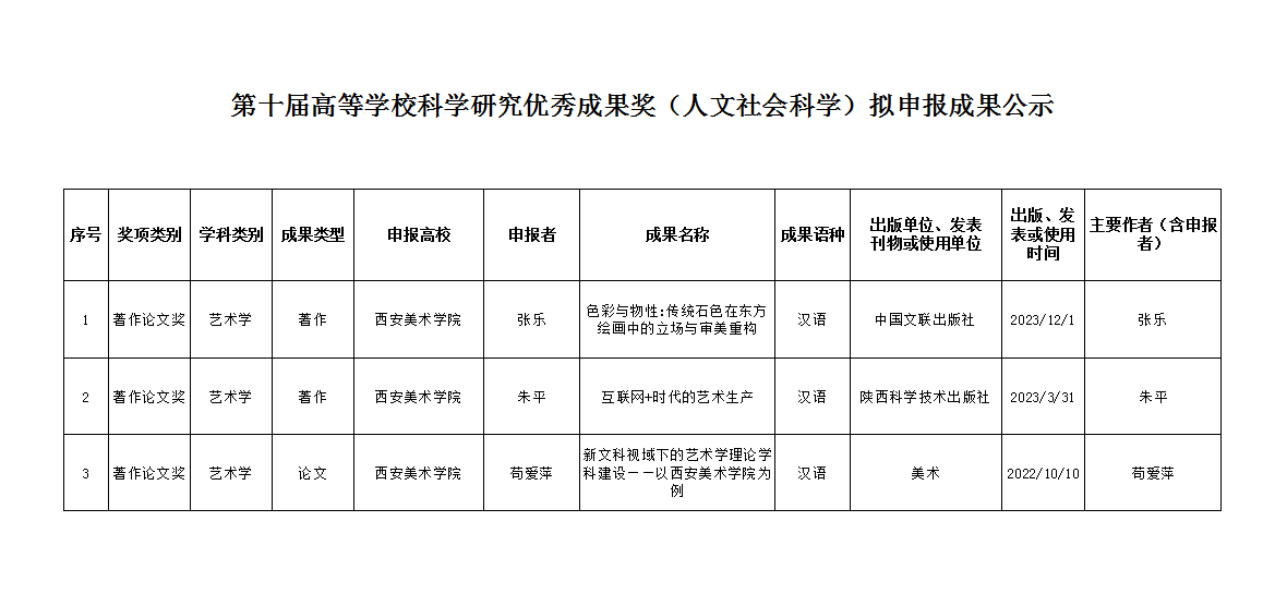 根据陕西省教育厅《关于做好第十届教育部高等学校科学研究优秀成果奖(人文社会科学)申报工作的通知》要求,现将学院参评成果予以公示,接受监督。