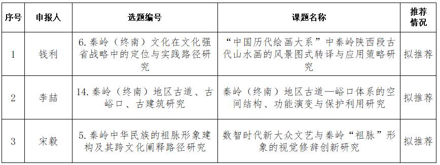 根据《关于陕西省哲学社会科学研究专项2026年度秦岭(终南)文化重大研究项目申报的通知》(陕社科联〔2026〕46号)文件,学校根据公平、公正、公开的原则经专家评审,拟推荐项目3项。现将有关信息进行网上公示,接受监督。