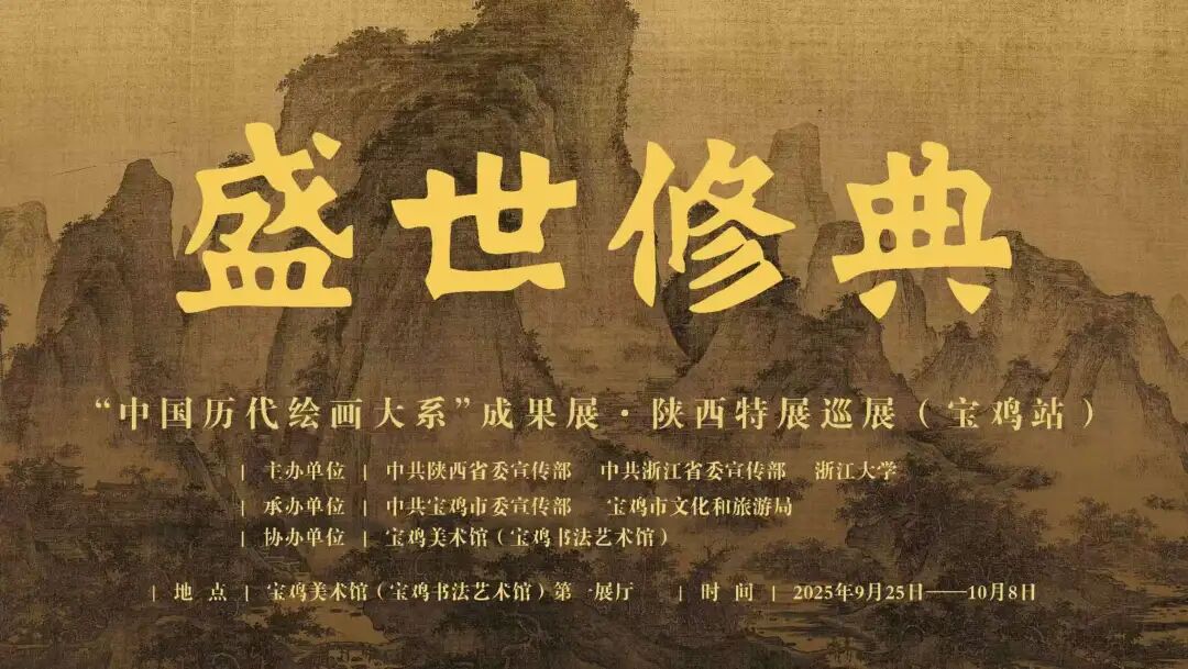 2025年9月25日至10月8日,盛世修典——“中国历代绘画大系”成果展·陕西特展巡展(宝鸡站)在宝鸡美术馆(宝鸡书法艺术馆)开展。“盛世修典——‘中国历代绘画大系’成果展•陕西特展”自2025年7月在西安美术馆开幕以来,广受好评。同时对标“新大众文艺”需求,艺术直达基层,8月至11月在省内10个地市开展“大系”下基层巡展活动,宝鸡为全省第6站。展览共展出作品100幅,分为汉唐气象、宋韵无尽、元气淋漓、明丽煊耀、清流回荡5个篇章,为宝鸡市民提供了近距离感受中华绘画艺术精华的机会,以艺术的力量推动中华优秀传统文化发展。